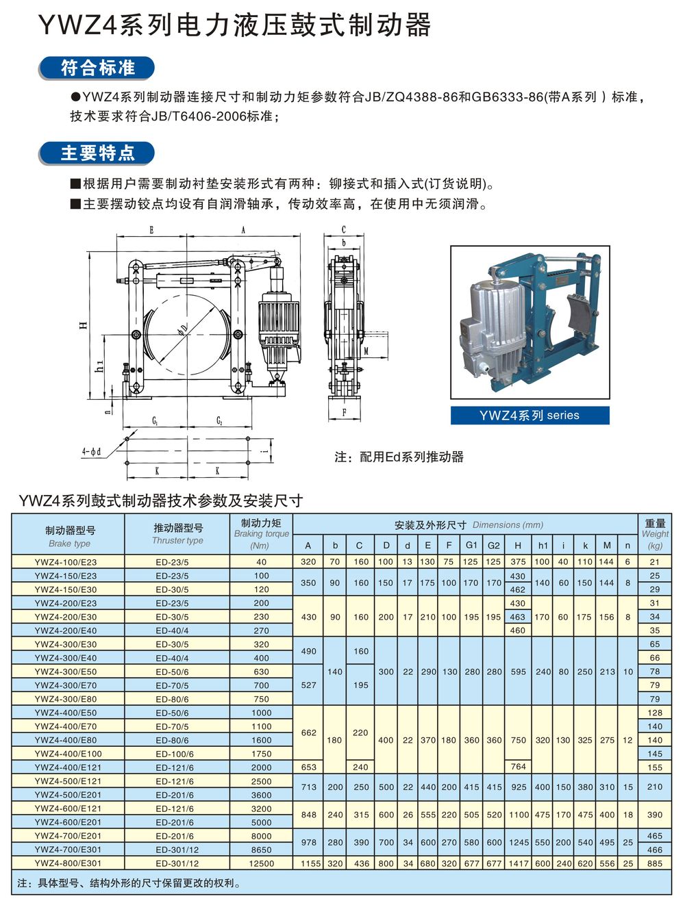 YWZ4系列电力液压鼓式制动器